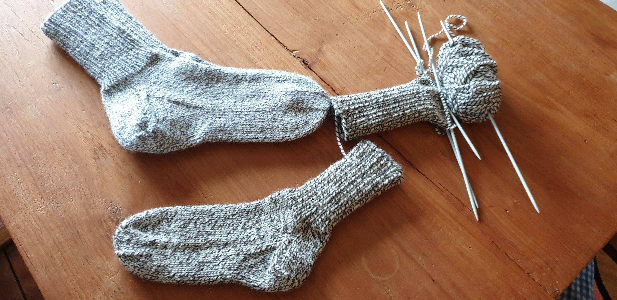 Dat was het minst leuke werk van de week. De rest van de week was ik wel tevreden. Breide eerst de sokken van Rien af(dat kan z’n vrouw dan weer wel hé:-),daarna gelijk een sok voor Hidde opgezet en in 1 dag afgebreid. Dikke wol en maatje 35,dat gaat hard, de andere is op de helft en moet voor zaterdag klaar zijn.