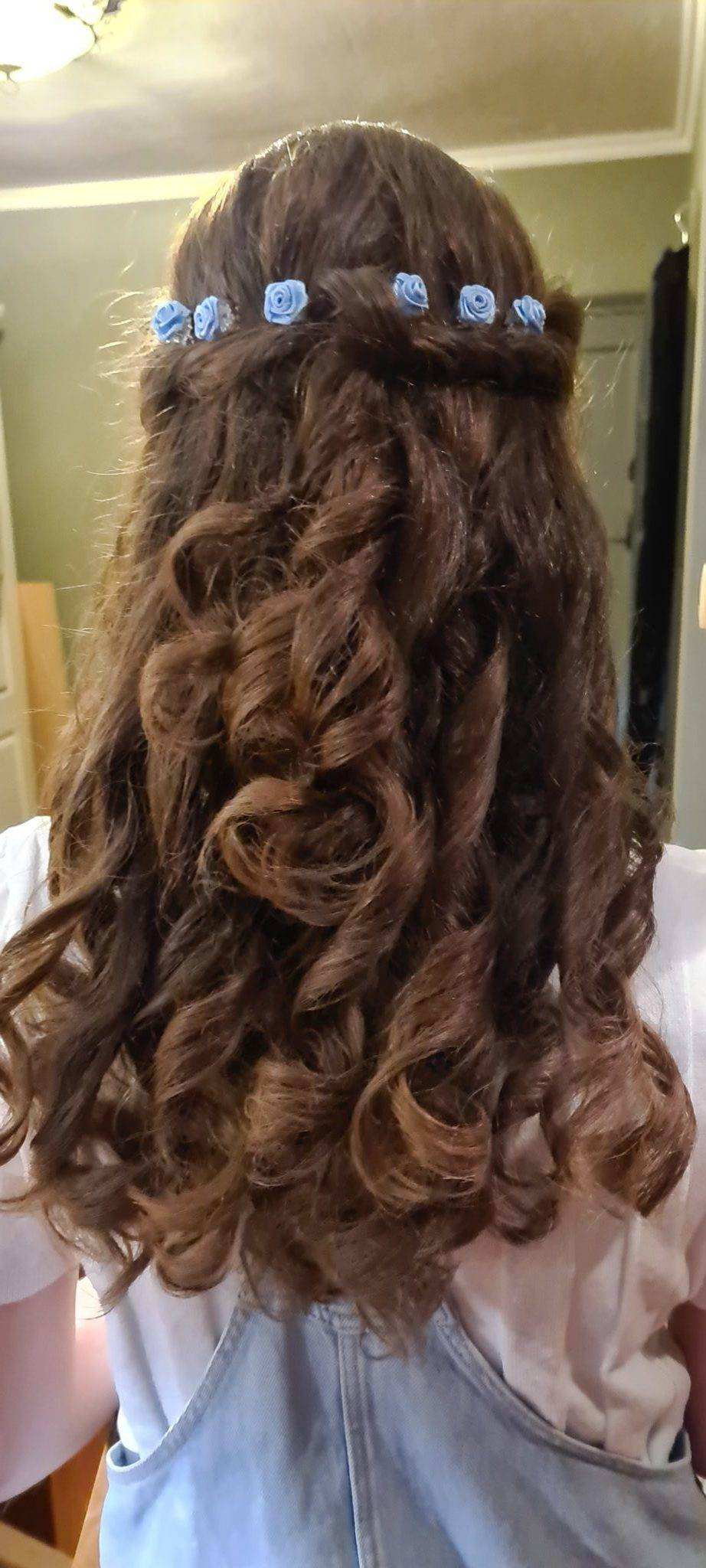 Durfde het er niet op te gokken om hun de nette kleren van die dag al aan te trekken. Ze hebben foto’s gemaakt op de boerderij waar ze op zaterdag werkt en in het natuurgebied de Blauwe kamer. Daar het nog erg vroeg en vrij mistig was, denk ik dat dat wel prachtige foto’s op zal leveren. Ondertussen werden mijn haren gedaan(zo deftig, niet gewend), ook nog in de oude kleren want m’n nieuwe kleren heb ik net voor we gingen pas aangetrokken.