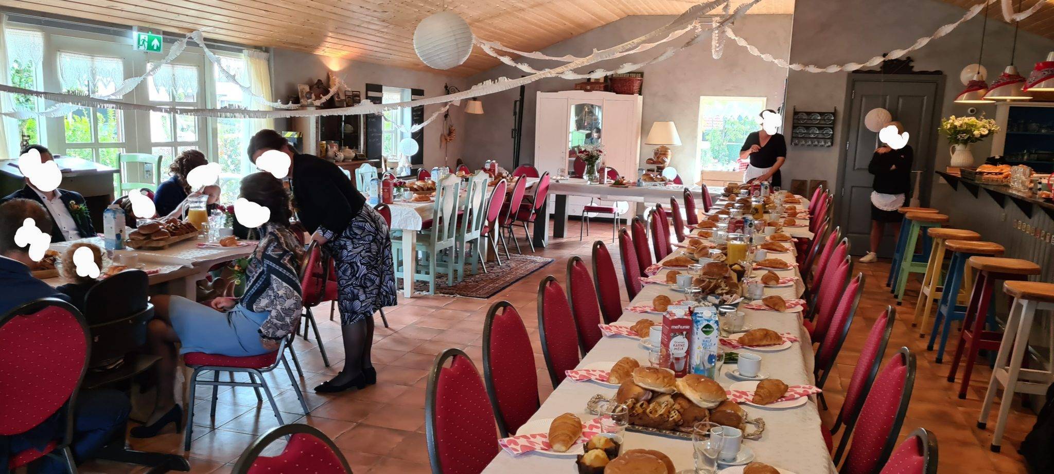 Na afloop weer naar huis met z’n allen om de lunch te gaan gebruiken. De serveersters hadden echt alles uit m’n kasten getrokken om het zo gezellig mogelijk te maken. Heel leuk om te zien, het zag er zo feestelijk uit. Alle gasten pasten maar net in de theeschenkerij.