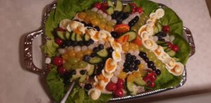 En ik had nog een fikse kater. Een half uur van te voren bij het opwarmen van de pannen met tomaten en groentesoep, bleek de hele pan groentesoep zuur te zijn geworden. Snap werkelijk niet hoe dat kan. Maak altijd de soep twee dagen van te voren omdat hij dan op z’n lekkerst is. Na het klaar maken ook gelijk in de koelkast gezet. En ook nog een kom van gegeten. Wat was ik blij dat ik voor het opdienen nog even een hap van de soep nam. Het zou je toch overkomen dat we hem al opgediend hadden. Het personeel heeft toen gauw bij de Coop nog een paar blikken groentesoep van’ Struik ‘ gehaald. We moesten toch wat,de pan tomatensoep was ook niet genoeg voor 35 man. Heb het wel eerlijk verteld tegen de mensen. Dit is echt onmacht. Ze namen het nogal goed op hoor,was geen probleem. Maar ik had er fiks de balen van. Maar de avond was erg gezellig. We liepen de eerste drie uur met drie man om alles goed te laten verlopen,later konden we het met 2 man af.