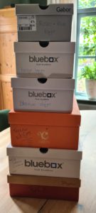 En toen was er maandagmorgen eerst een klusje aan de beurt die elke keer weer uitgesteld werd. Er stonden al een paar weken zakken met lapjes te wachten die ik had gekregen voor het freubelen. En vorige week kreeg ik weer kleren en lapjes dus nu moest het echt gebeuren. Alles gesorteerd op kleur en stof, dat is tenminste overzichtelijk en fijn dat je het gelijk kan vinden als je het nodig hebt. Toch wel makkelijk dat ik altijd een hoop schoenendozen hebt staan omdat we een groot gezin hebben. Komt altijd wel van pas.