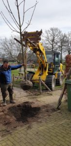Vaders had het gat al gegraven dus de boom kon er zo in. De dag kon niet meer stuk.
