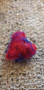 Daarna naar de kerk voor de Biddag. Uit de kerk boodschappen gehaald voor het avondeten ,een paar crackers gegeten en toen de gevilte hartjes geborduurd. Zijn ook leuk om aan een bos bloemen te hangen die je weg moet geven. Of aan een cadeautje.