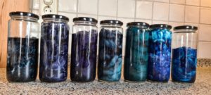 Zelf verfde ik ook mee met die zelfde kleuren en ook die werden weer anders. Toen ze weg was de restjes verf maar opgemaakt en nu ligt er lekker wat kleurige wol te wachten tot het gesponnen wordt.