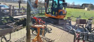Dinsdag waren de mannen thuis in de tuin aan het werk en Hidde bedacht dat hij wel een moestuintje wilde hebben. Maar het enigste stukje wat daar voor nog over was ,was bij zijn kippenhok. Dat was al jaren een klein stukje lelijk gras. Hij ging wel even het gras omspitten dacht hij, maar dat was hij zo zat. Nog een beetje te zwaar werk. Gelukkig voor hem dat z’n broer thuis was en met de kraan het gras eraf schraapte, dat was in 10 minuten gefikst. Scheelde hem een hoop zweetdruppels. Nu moet er nog zaad gekocht worden want hij heeft al hele plannen.
