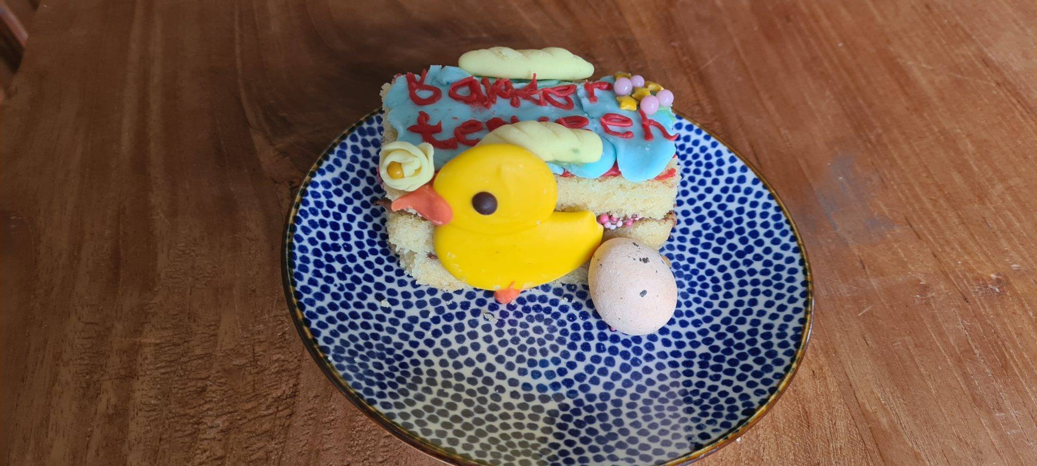 De kinderen en een logé deden donderdag nog mee met een winactie. Ze moesten thuis een mooie creatie maken van een taartje en dan een foto ervan naar de bakker sturen, daar kon je dan een prijs mee winnen. Dames druk aan de slag geweest, nu maar afwachten wat het geworden is. Aan de foto’s te zien hebben ze de fantasie bij elkaar afgekeken want ze zijn bijna allemaal hetzelfde?. Ze zijn in ieder geval weer een poosje zoet geweest.
