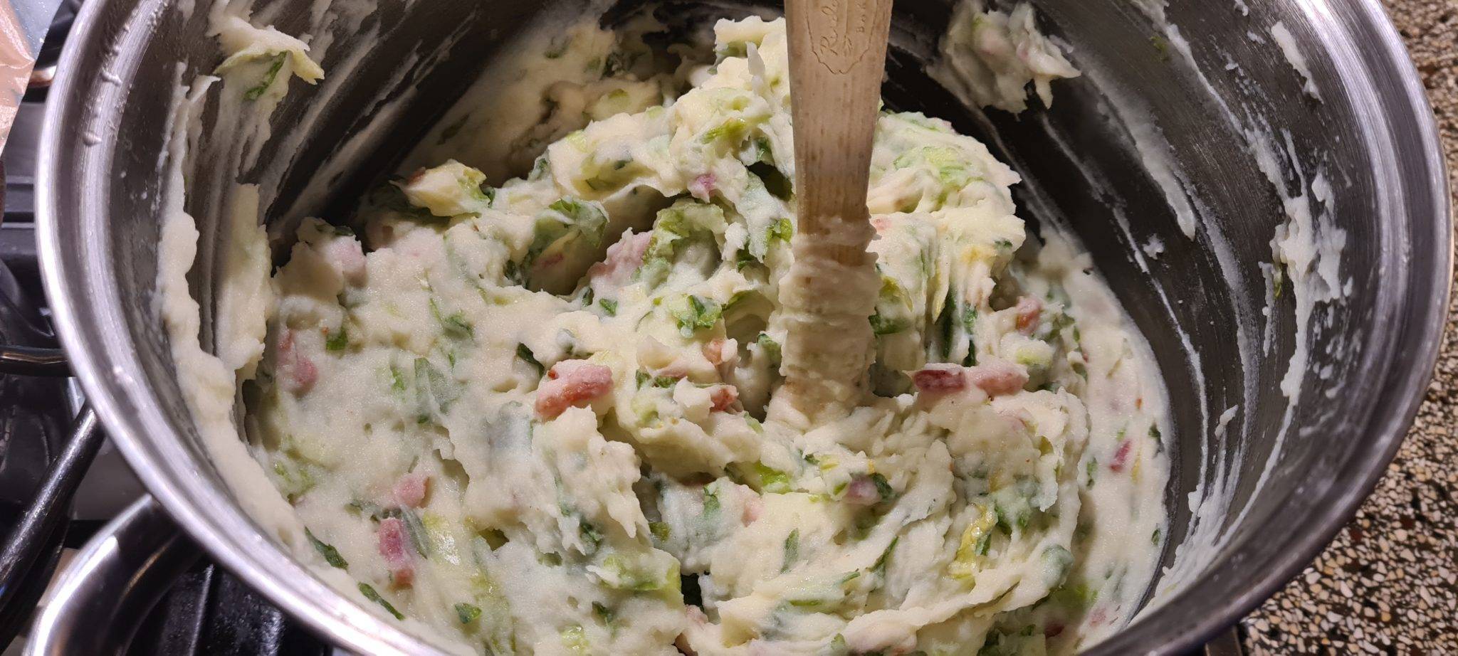 Daarna werd er een pan andijviestamp gekookt en voor vaders een bord bonen. Ze hebben er heerlijk van gesmuld.