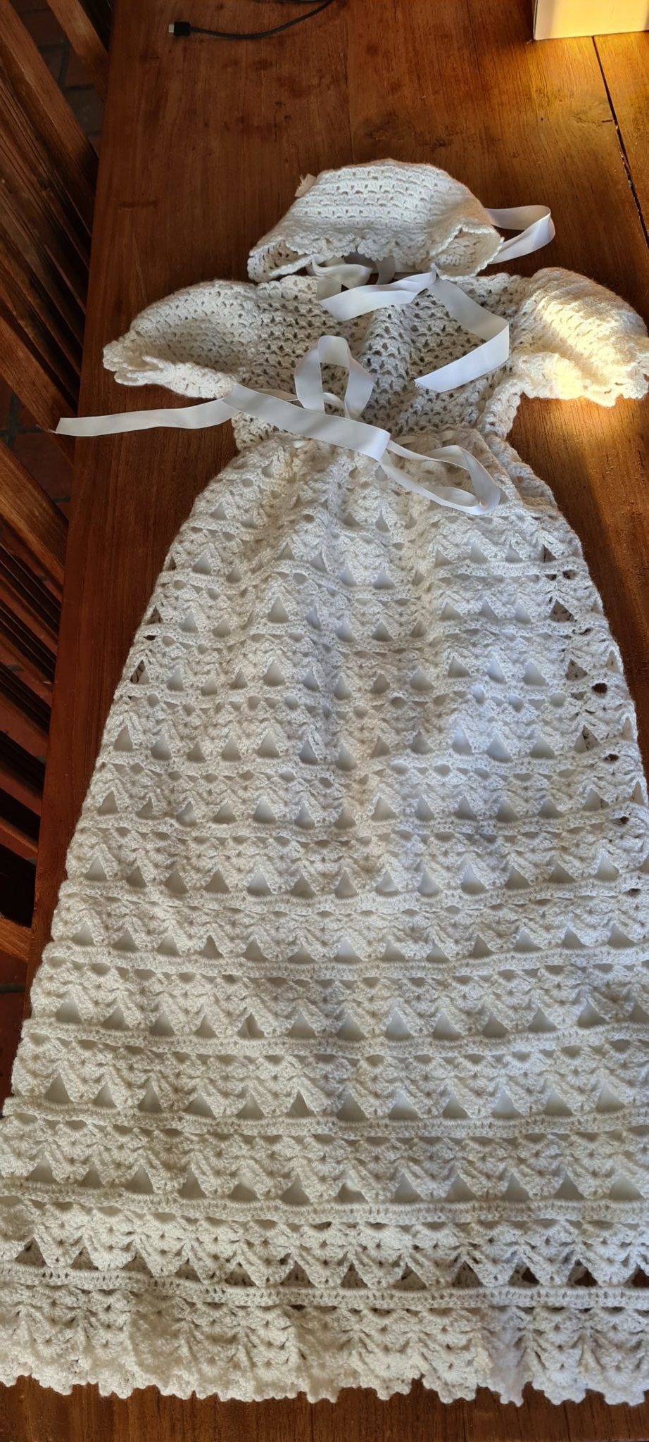 Moest die middag met Mirjam naar de tandarts, omdat het best wel een lange behandeling was had ik m’n breiwerk maar meegenomen. Was de tijd ook weer nuttig besteedt. Als ik stil moet gaan zitten wachten dan gaat het mis, want dan krijg ik altijd vreselijk slaap. Staat ook zo raar hé! Op de terugweg hadden we allebei zin om even bij de kringloop langs te gaan. Vond daar een allerschattigst gehaakte doopjurk, zo mooi! Voor 5 euro, nou dat laat je toch niet hangen voor dat geld. Hangt nu te pronken in de kamer aan de spiegel.