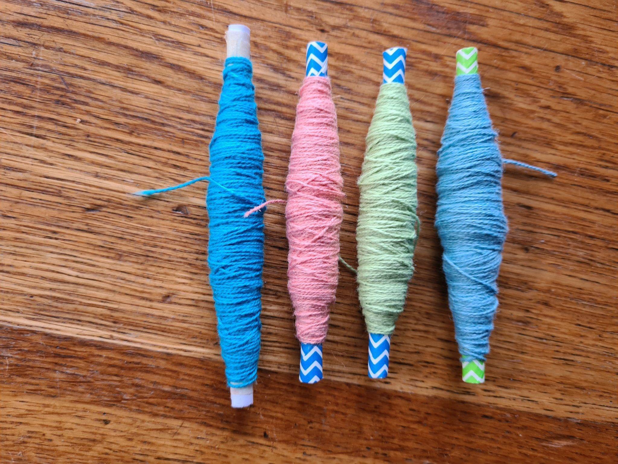 En je moet van te voren allemaal rolletjes met draad maken die je in het schuitje legt. Daar heb je een apparaatje voor maar ik zag dat dat ding 95 euro kost. Zo komt er elke keer extra dingen bij. Heb nu zelf een paar klosjes gemaakt maar ik moet toegeven dat je daar toch wel een poosje op zit, en als je dat voor 4 theedoeken moet doen, zit je een paar avonden te draaien. De beslissing wel of niet zo’n apparaatje was gauw gevallen?.