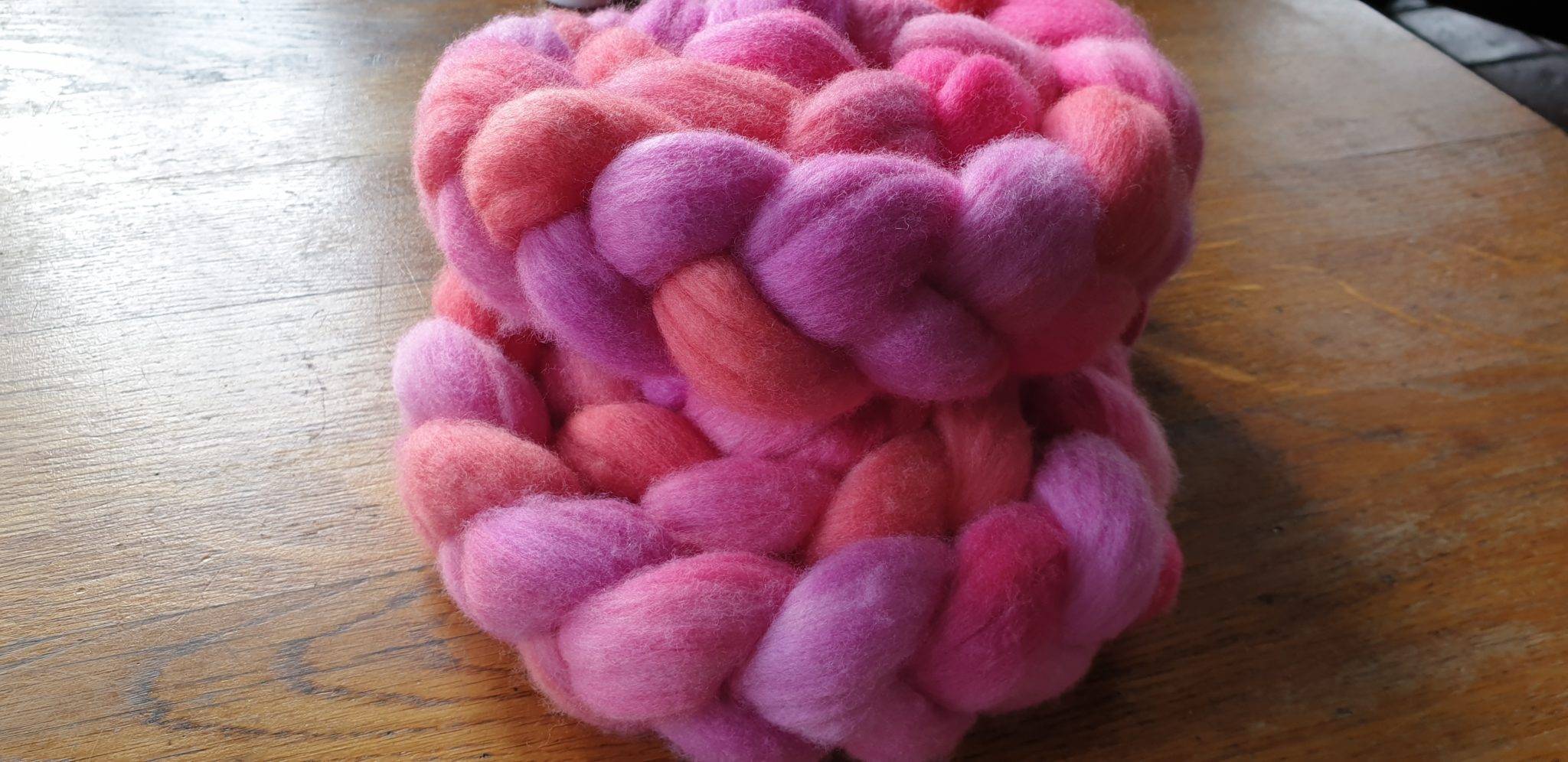 Verfde maandag nog een paar strengen merinowol voor de voorraad in groentinten en rood/roze. Dik tevreden over het resultaat.