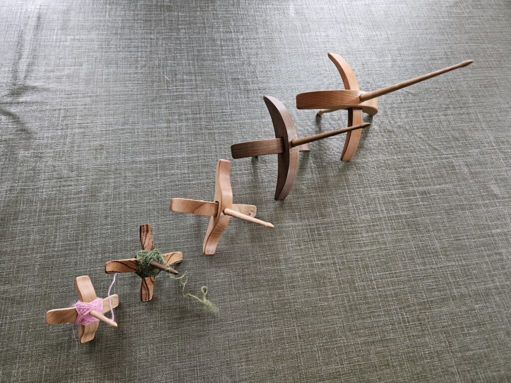 Zelf kocht ik van de week bij Studio Spintol 4 turkse spintollen in verschillende maten. Vorig jaar had ik bij Bregje ( dat is de eigenaresse) ook een klein tolletje gekocht om zijde te spinnen. En dat is toch wel zo’n geweldig ding. Zelden zo’n fijne tol gehad. Dat was maat 1. Nu maat 2,3 en 4 aangeschaft en nog het kleinste tolletje dat ze in haar assortiment heeft, geschikt voor hele gladde vezels of hele korte vezels zoals Yak of Kasjmier. En het is zo leuk om van haar een pakketje te ontvangen want het wordt altijd ingepakt in een oud kringloopblikje, echt zo schattig. Deze keer zat er nog een blik met wol bij omdat ik er zoveel tegelijk had gekocht. Kocht bij haar om te spinnen op de tollen wat katoen, en nog wat verschillende mengsels. Kan kilometers draad maken als ik niets te doen heb😄.