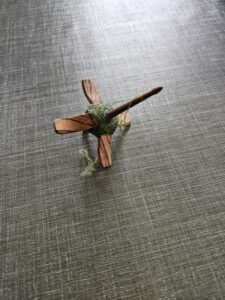 En dan nog de Navajo-spintollen. Die zijn 70 cm of langer, rusten op de grond en tegen je heup en geef je elke keer een draai langs je heup op om dat ding in beweging te krijgen. Foto van internet gehaald want deze tol heb ik zelf nog niet.