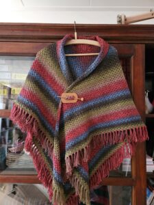Frieda, de haakster voor de winkel haakte een prachtige omslagdoek voor me van het nieuwe garen van het merk Sesia dat we sinds kort in het assortiment hebben. En wat is tie mooi geworden. Zulke warme kleuren. Het is een hele eenvoudige steek, meer heeft het ook niet nodig want het garen maakt het sprekend. Ze heeft bijna 3 bollen gebruikt, maar het is dan ook een hele royale omslagdoek die je heerlijk om je heen kunt gooien. Per bol kosten ze 27 euro. 5 verschillende kleuren hebben we in het assortiment.
