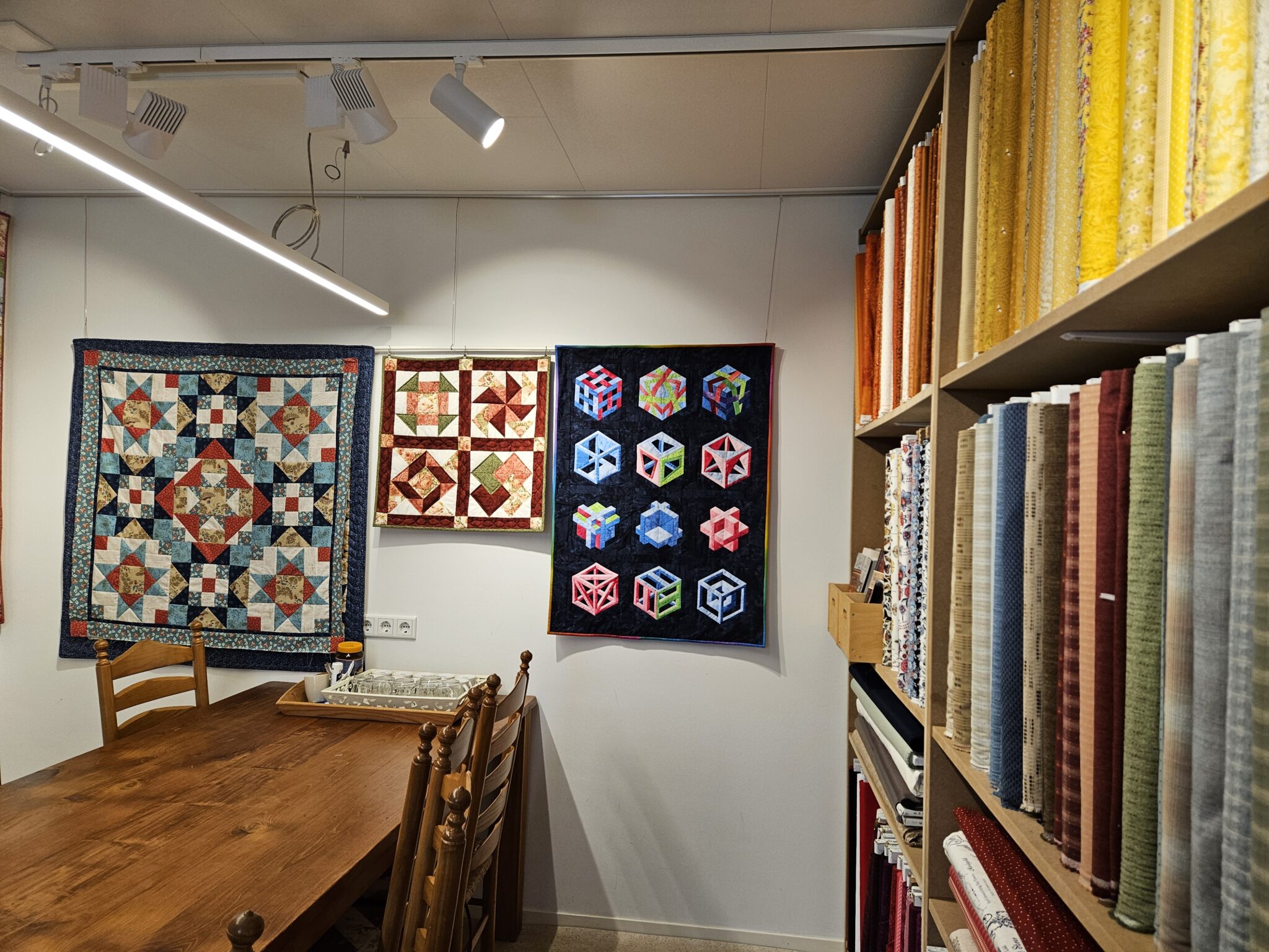 Zaterdagmiddag zijn we naar Ede geweest naar Wilma Karels. Zij heeft al 25 jaar een prachtige quiltwinkel. Wat een snoepwinkeltje. Met enorm veel keus aan lapjes, garen en alles wat nodig is om te quilten. Toch heerlijk zulke winkeltjes, waar vind je dat nog? En een hele aardige eigenaresse, dat is minstens zo belangrijk hé 😉. Zo jammer dat steeds meer van die kleine winkeltjes sluiten en plaats maken voor online. Ik merk zelf in onze winkel dat mensen het heerlijk vinden om de wol te zien en te voelen en soms ook nog te ruiken😂. Kleuren zien er altijd anders uit als je ze online besteld. Of je moet de wol kennen en het merk weten dan is het geen probleem.