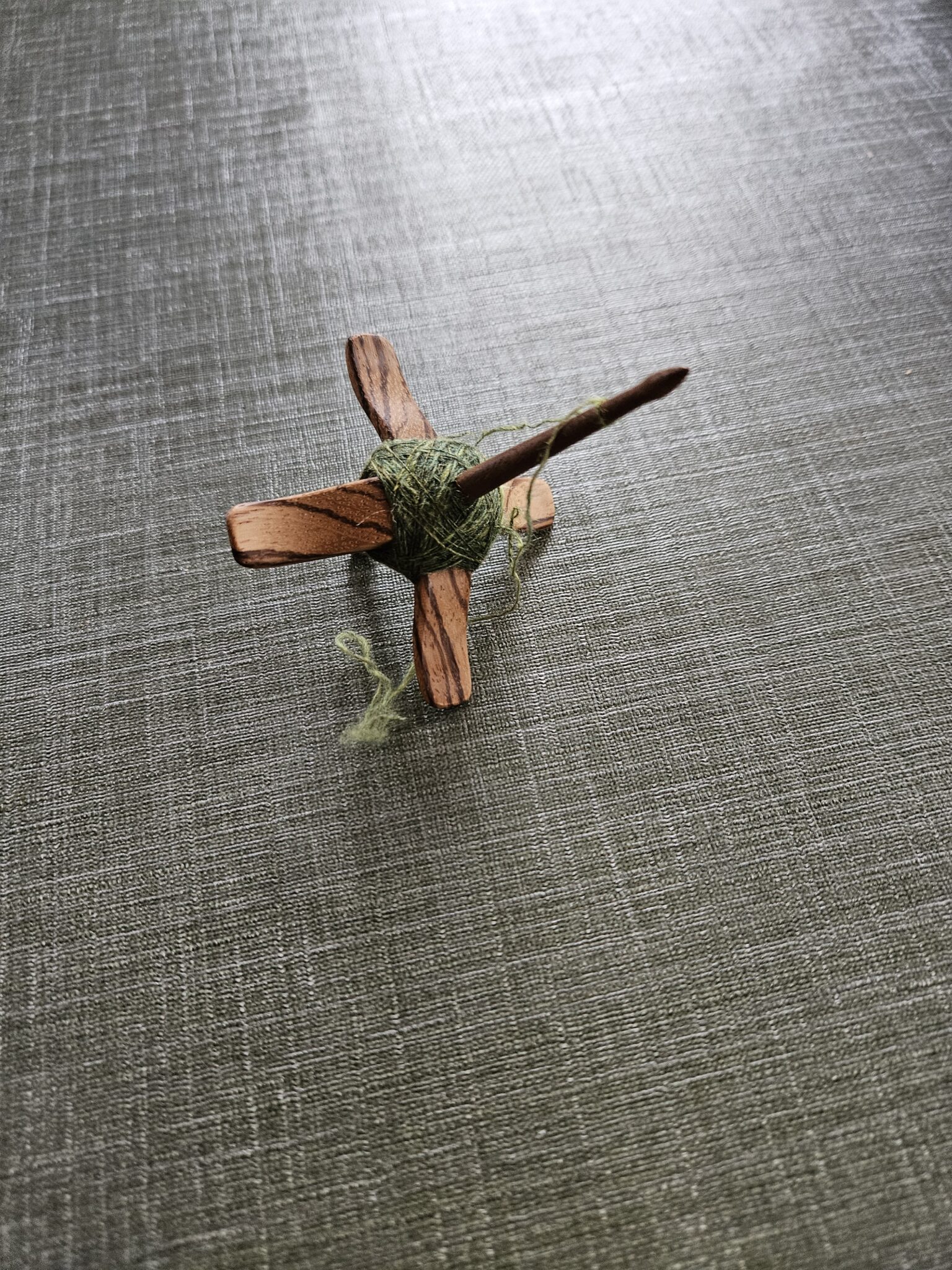 Tollen met 4 pootjes onderaan( Turkse tol, mijn favoriet). Die tol kun je uit elkaar halen en dan heb je een bolletje wol die je met de draad aan het uiteinde en de begindraad aan elkaar kunt twijnen.