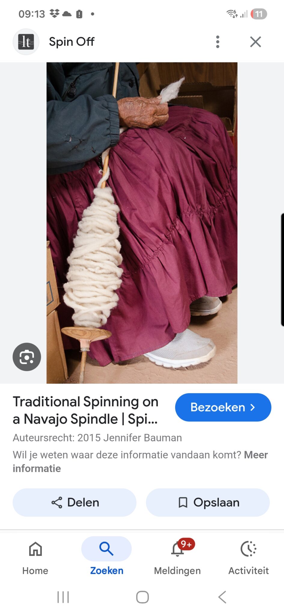 En dan nog de Navajo-spintollen. Die zijn 70 cm of langer, rusten op de grond en tegen je heup en geef je elke keer een draai langs je heup op om dat ding in beweging te krijgen. Foto van internet gehaald want deze tol heb ik zelf nog niet.
