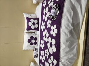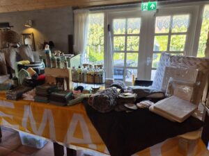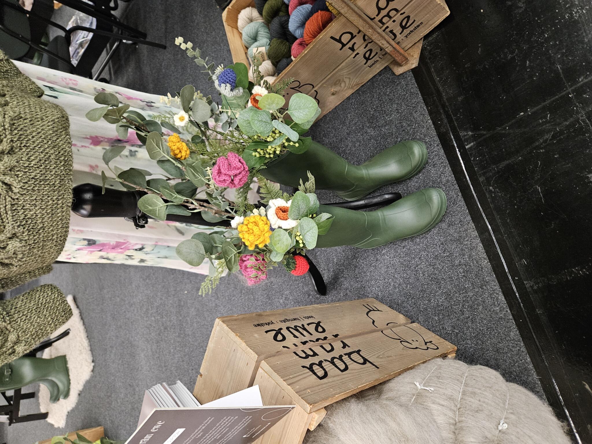 Wat we ook leuk vonden was dat we Sasha ontmoet hebben op de beurs. Zij is degene die 2 boeken met sjaals haken en een boek met bloemen haken op haar naam heeft staan. Ik weet wel toen vorig jaar haar boek met bloemen haken uitkwam ik zo door m’n boeken hen was in de winkel. En een run op het garen van scheepjes wat ze daar voor gebruikte. Vooral de groene kleur, die was gewoon maanden lang niet meer leverbaar. Dit jaar komt er weer een nieuw boek met bloemen haken uit , ik geloof ergens in juni. Heb gelijk al een stapel besteld. Alleen gaat ze het dit keer van het garen van Durable haken. En dat heb ik niet in het assortiment. En dan zullen sommige denken, ik doe het wel met het garen van Scheepjes maar het is gebleken dat mensen precies de kleuren en garen willen gebruiken die ze in het boek gebruikt. Dus vertegenwoordiger gebeld en nu gaan we over op Durable katoen. In ieder geval met de kleuren die zij gebruikt voor de bloemen.