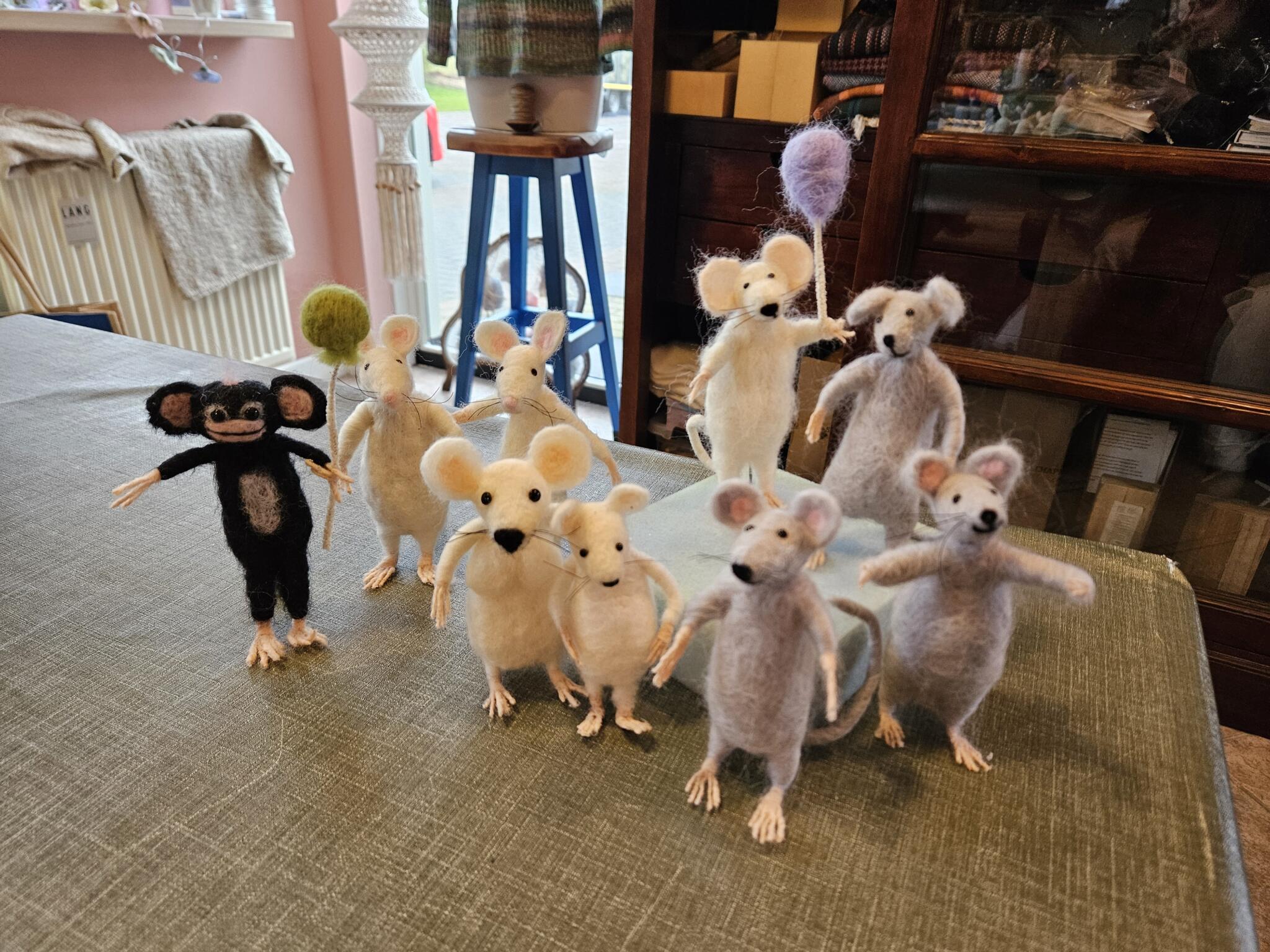 En van de cursus muizen naaldvilten. Een cursist maakte er een aap van i.p.v een muis🐒