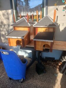 De buitenkant moet denk ik maar groen worden net als het huis. Of misschien laat ik die gewoon wel houtkleur, alleen beitsen. Heb nog wel de tijd om erover te denken. Is alles bij elkaar ook wel weer wat uurtjes werk. Zit me niet op m’n nek hoor, zie vanzelf wel wanneer het af is. Voorlopig staan er nog cursussen genoeg in de agenda die ik mag geven. Maar ik heb met mezelf afgesproken dat ik geen cursussen geeft van 1 juli tot 1 oktober. Nou, dat klinkt heftig hé. Weet je waarom? Ten eerste, als alles goed mag gaan komt er begin september weer een kleinkind bij. En omdat er nog 3 jonge kinderen in dat gezinnetje zijn wil ik graag alle tijd hebben om die op te vangen en hulp te geven waar het nodig is. En ten tweede wil ik nu gewoon eens een keer al m’n projecten afmaken en m’n achterstallig huishoudelijk werk wegwerken. Af en toe moet je je hoofd leeg maken. En dat hoop ik dan te gaan doen. Nu nog proberen standvastig te blijven in m’n besluit😂. En dan b.l.e.w in oktober starten we weer met de cursussen. De winkel blijft natuurlijk wel gewoon open in die periode, met uitzondering van 2 of 3 weken voor de zomervakantie. Maar dat laat ik wel vroeg genoeg weten.