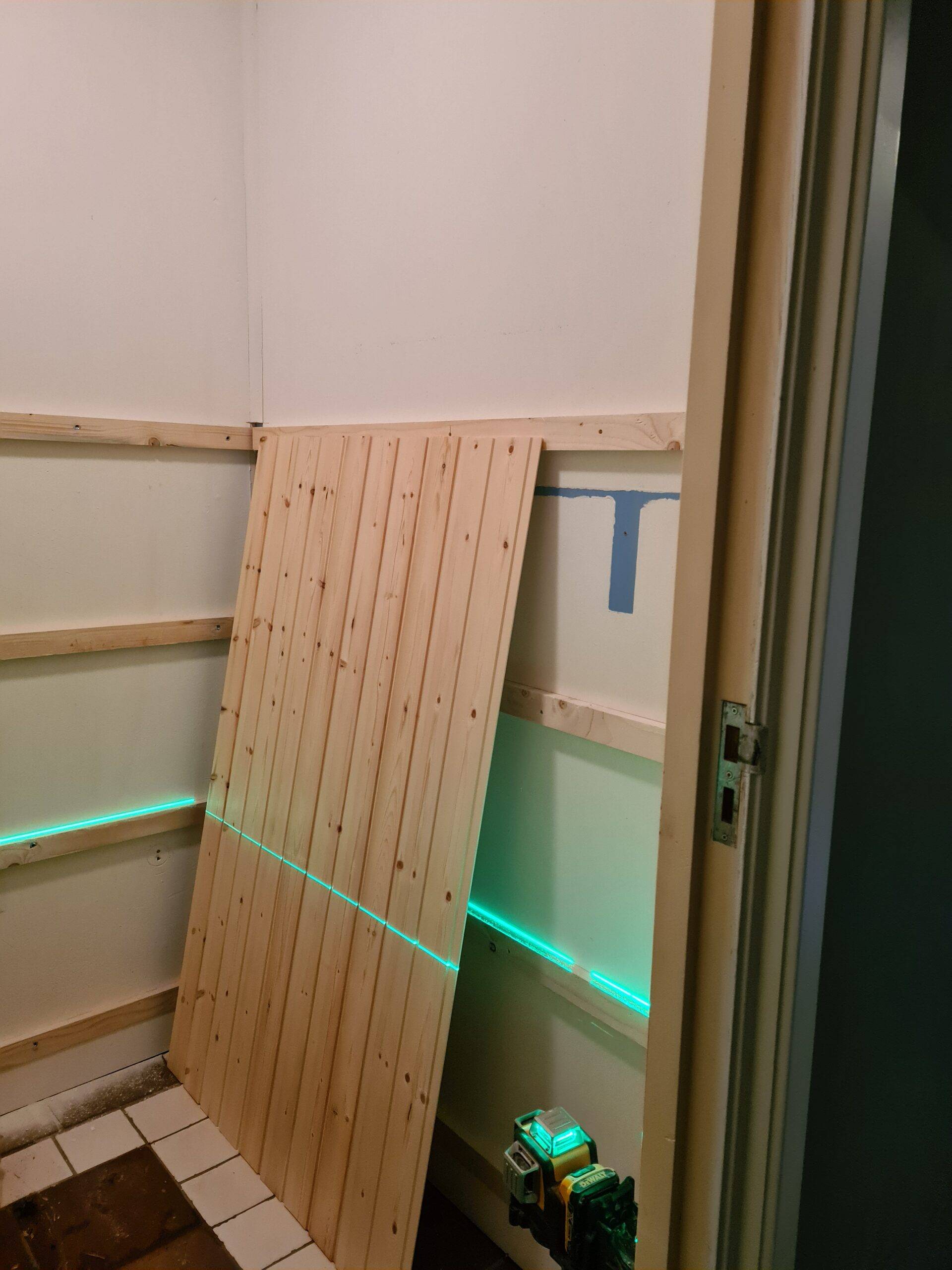 De timmerman is vorige week begonnen met het betimmeren van de wc boven. Die is 17 jaar oud en zag er na al die verbouwingen boven niet meer uit. Dat wil zeggen dat er heel veel verf op de vloer zat. Het was een vrij ruwe tegelvloer dus ik kreeg het er ook niet meer af. En een uitgebeten vlek van de terpentine. Wasbak die lelijk was geworden na al die jaren, muren niet fris meer. Kortom, het was hard nodig. Had al zitten zoeken wat het moest worden, tegels op de muren wilde ik niet, nu hebben we hem laten betimmeren met schrootjes, hoogte 1.40 en een latje erboven op voor de afwerking. Toen moest er nog een vloer uitgezocht worden. Nu heb ik daar altijd vrije keus in want Rien vind alles best, hoe makkelijk! Gisteren zijn we naar de tegelhandel in Zetten geweest en hebben daar Portugese tegels uitgezocht. Allemaal verschillende tegels en allemaal verschillende kleurtjes. Gisterenavond heeft hij ze gelegd en vandaag moeten ze gevoegd worden. Kan nog net voordat de loodgieter de wc pot weer aankomt sluiten. Die missen we best, nu moeten we s’nachts naar beneden om naar de wc te gaan. Nu moeten de schrootjes ook nog een kleurtje krijgen en nog behang aan de bovenkant van de schroten wat nog vrij is. Vind dat oude vintage behang zo leuk, zal wel een bont wc’tje worden met commentaar van de kinderen????. En Rien is op zoek naar een klein badmeubel met waskom. De andere wasbak hadden we een keer gekregen en was eigenlijk te lomp voor de wc. Plus dat het wel makkelijk is al er een kastje staat voor de handdoeken, wc papier en schoonmaakmiddelen.