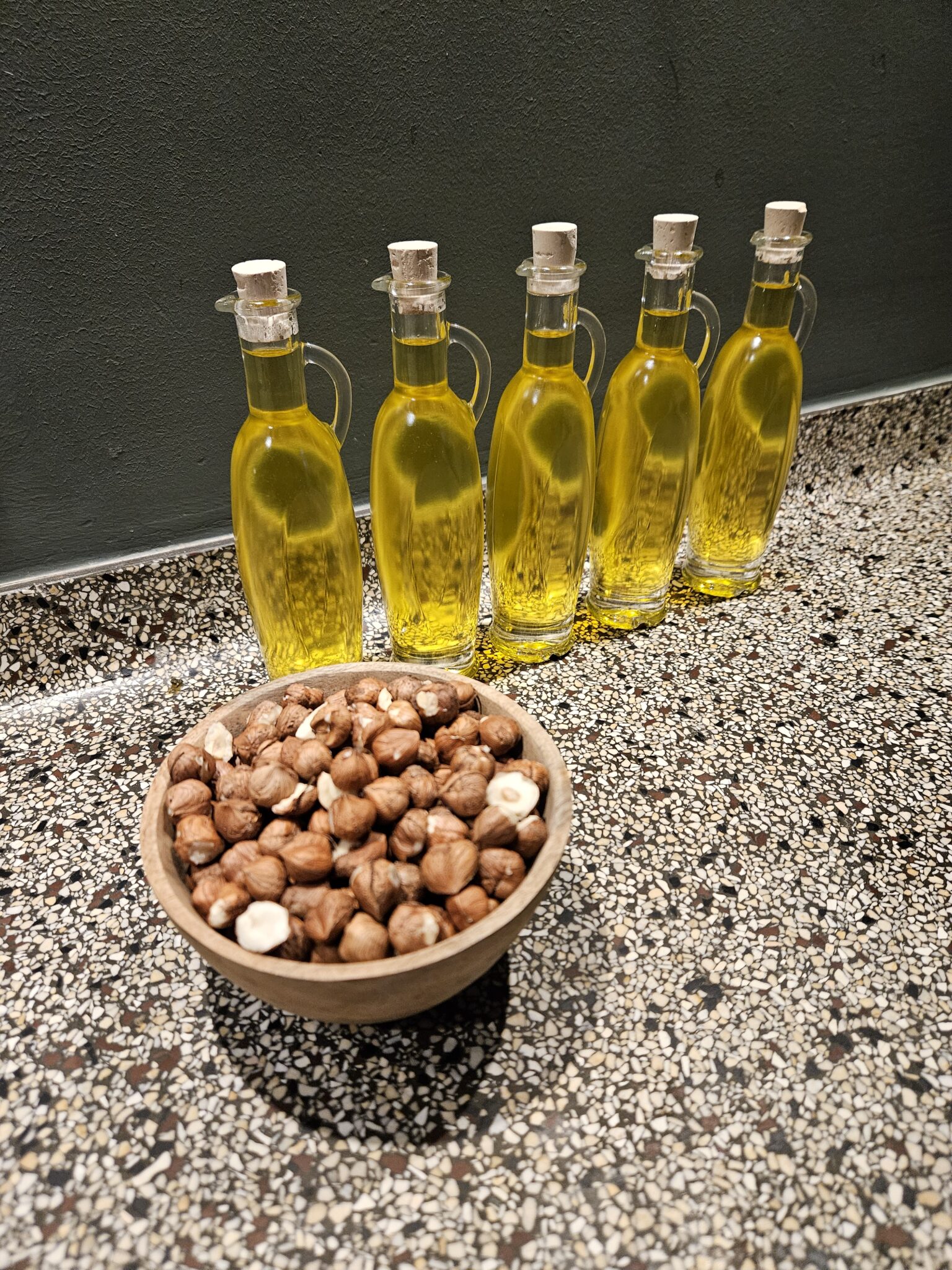 Maar ondanks dat we niet konden opschieten met de verbouwing hebben we ons eigen niet verveeld hoor. Rien heeft heel veel hazelnoten van eigen boom gekraakt en daar hebben we olie van geperst. Dat blijft een mooi werk. 5 flesjes bracht het op waar er inmiddels al 4 van verhuisd zijn. Het is echt lekker en je kunt het voor vele doeleinden gebruiken. Schijnt nog erg gezond te zijn ook als ik google moet geloven. Het is lekker door de sla, je maakt er een honing/mosterddressing van. Verhouding: 4 theelepels hazelnootolie- 1 theelepel mosterd- 1 theelepel honing. Een papje van roeren en door de sla mengen😋. Je kunt het als massageolie gebruiken of als je naar bed gaat je gezicht er lekker mee insmeren. Heb je de volgend dag een lekker zacht huidje. Ook goed voor ruwe plekken op je huid.