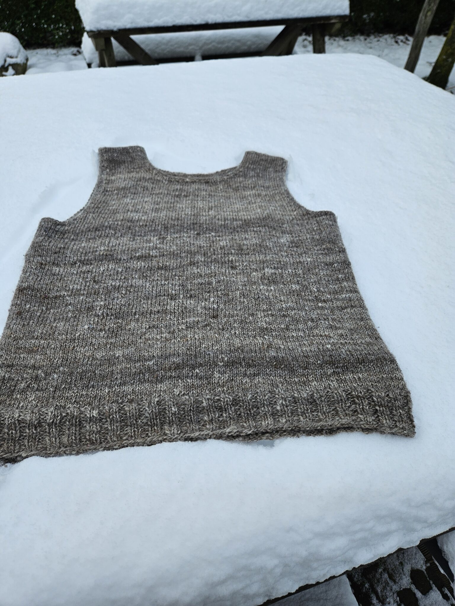 En we hebben natuurlijk genoten van de sneeuw. Wat een prachtig gezicht zeg. Jong en oud had er plezier in. Zelfs de grote broer en de pubers maakte een sneeuwpop. Heerlijk toch. En dan de hond, die kon er helemaal geen genoeg van krijgen. Jammer dat je na een paar dagen zo’n troep ervan overhoudt. Maar we klagen niet, zo veel sneeuw is er in jaren niet gevallen. En het was heerlijk voor de wolletjes die je er in kon opfrissen. Legde de borstrok van zoon in de sneeuw, heerlijk fris kwam hij er weer uit.