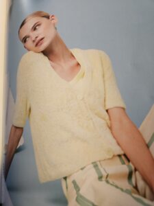 Deze truien/vesten hopen de dames te gaan breien voor de winkel, soms een ander kleurtje en wolletje dan het patroon. Het is wel allemaal van het nieuwe zomergaren.
