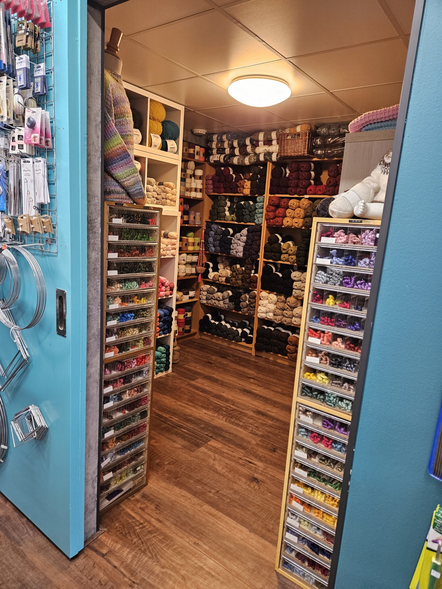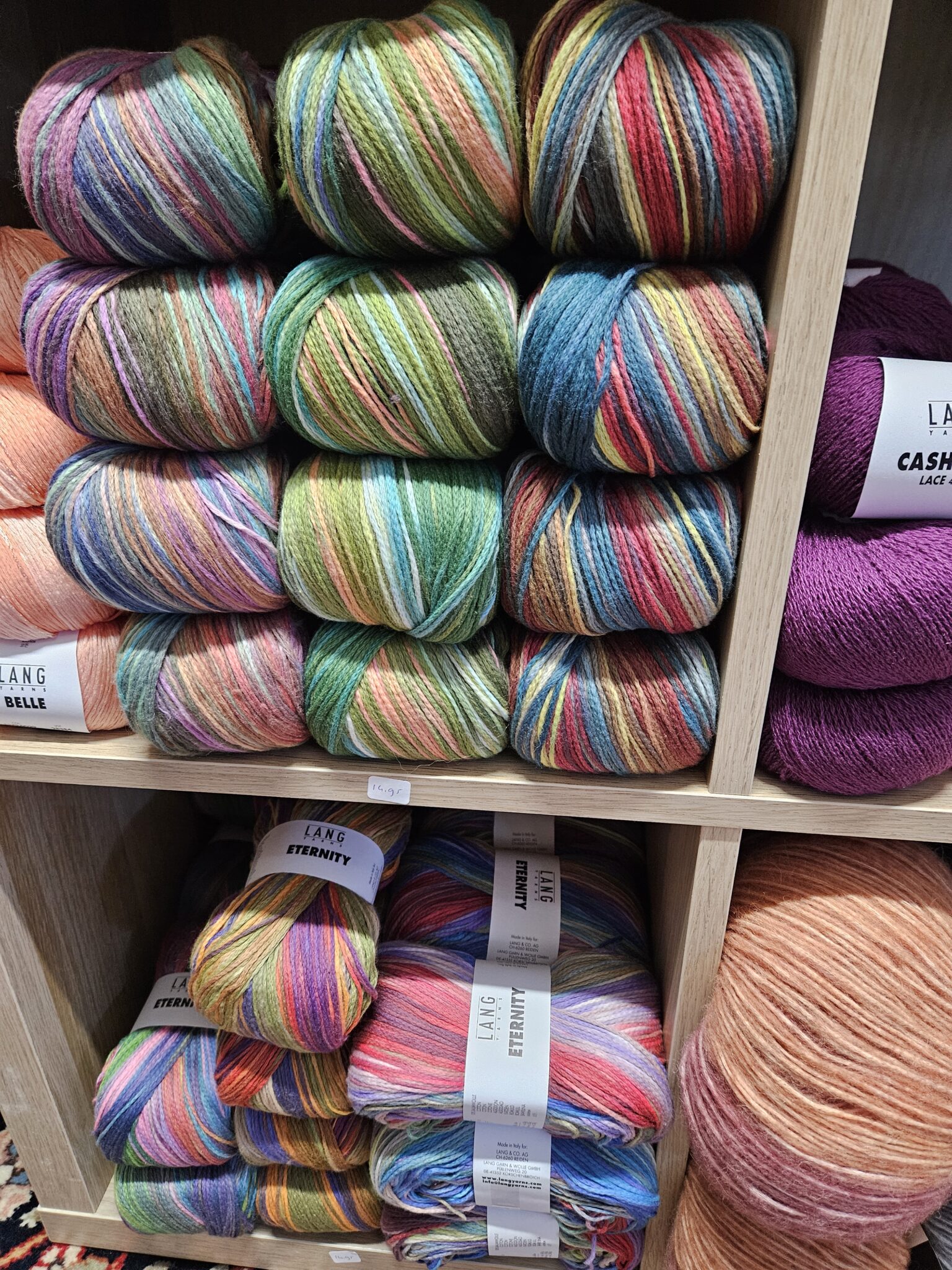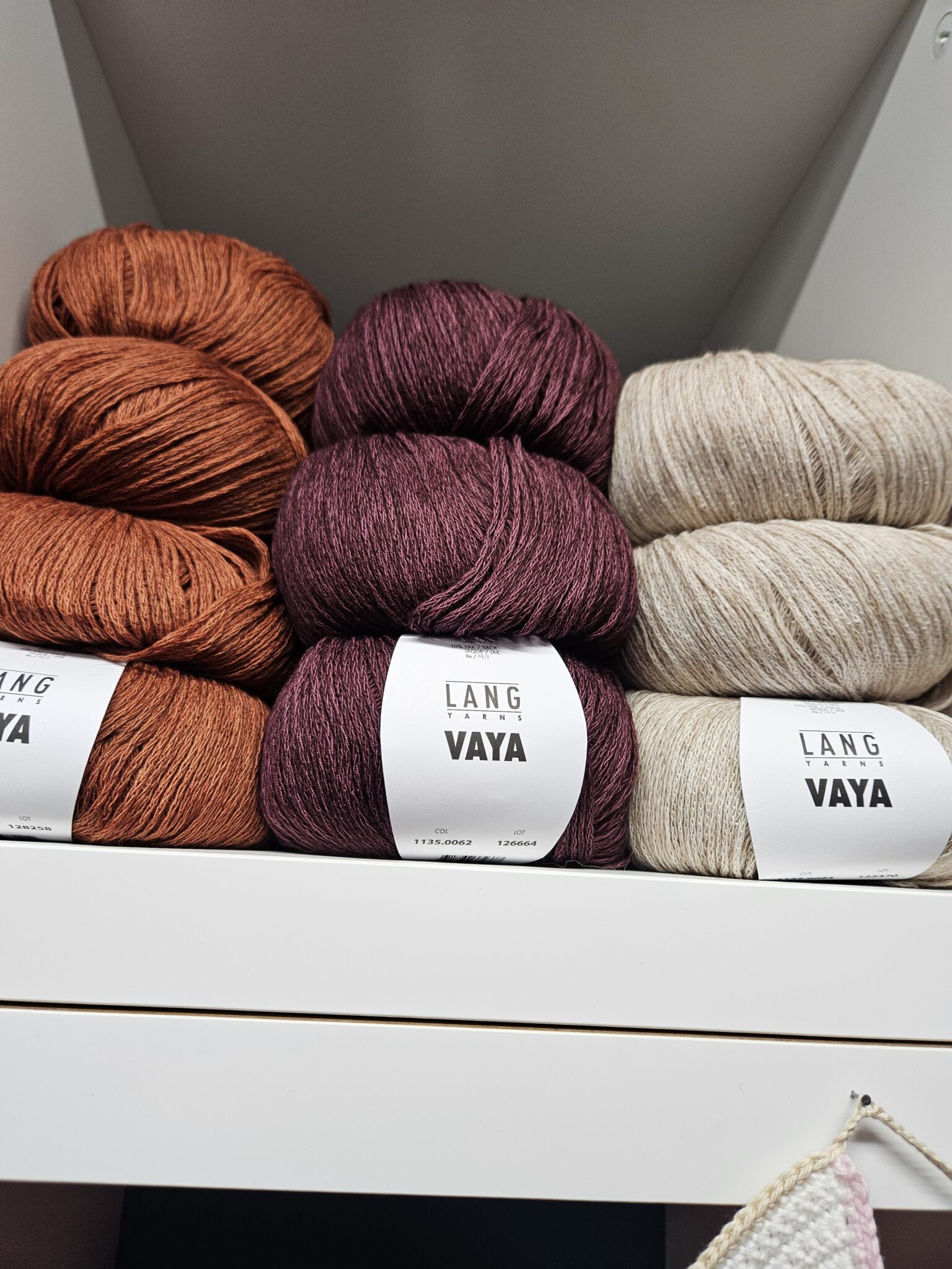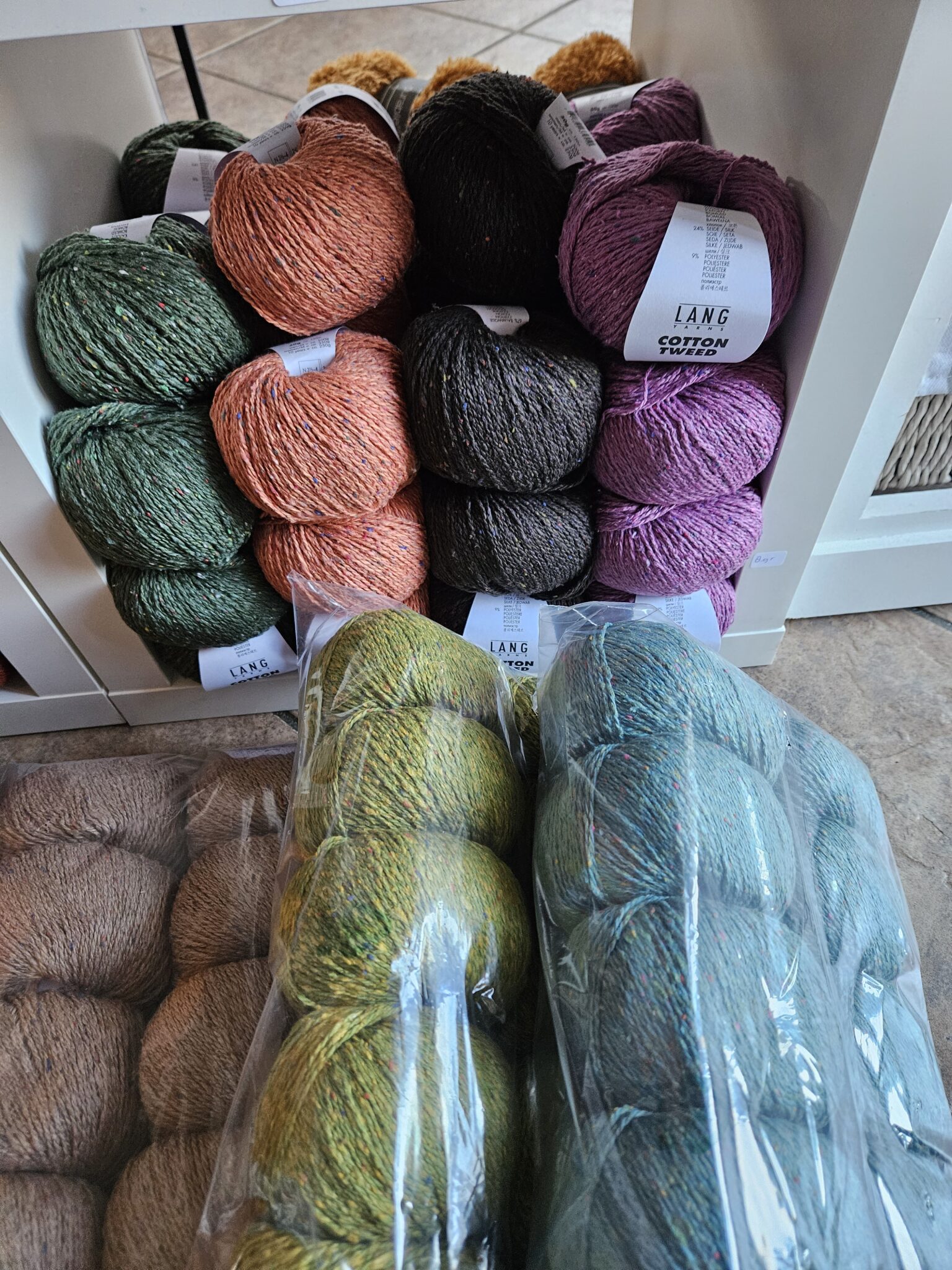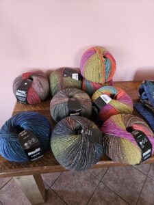 Een deel van het zomergaren is al binnen, bizar eigenlijk hé. We zitten nog midden in de kou. Maar moet eerlijk zeggen toen ik de dozen uitpakte het toch wel begon te kriebelen. Zo mooi en zacht garen. Gisteren kwam de vertegenwoordiger van de Sesia met z’n zomergaren. De andere was van de Lang. Bij hem ook nog maar een paar nieuwe soorten gekocht. Dat hoopt eind februari binnen te komen.