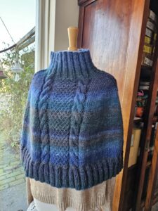 De poncho van de nieuwe Sesiawol die net binnen was is af. Erg mooi geworden en het was ook leuk om hem te breien. Duidelijk patroon en een heerlijk warm ding. Hij komt tot net over je elleboog dus je kunt er ook nog gewoon mee werken zonder dat hij in je pan of afwaswater hangt. Hij wordt gebreid uit 1 grote bol Maxxi op naald 6,5. Gaat lekker hard, is met 2 weken wel klaar. De bol kost 51 euro 400gram/600 meter. Patroon krijg je er gratis bij!