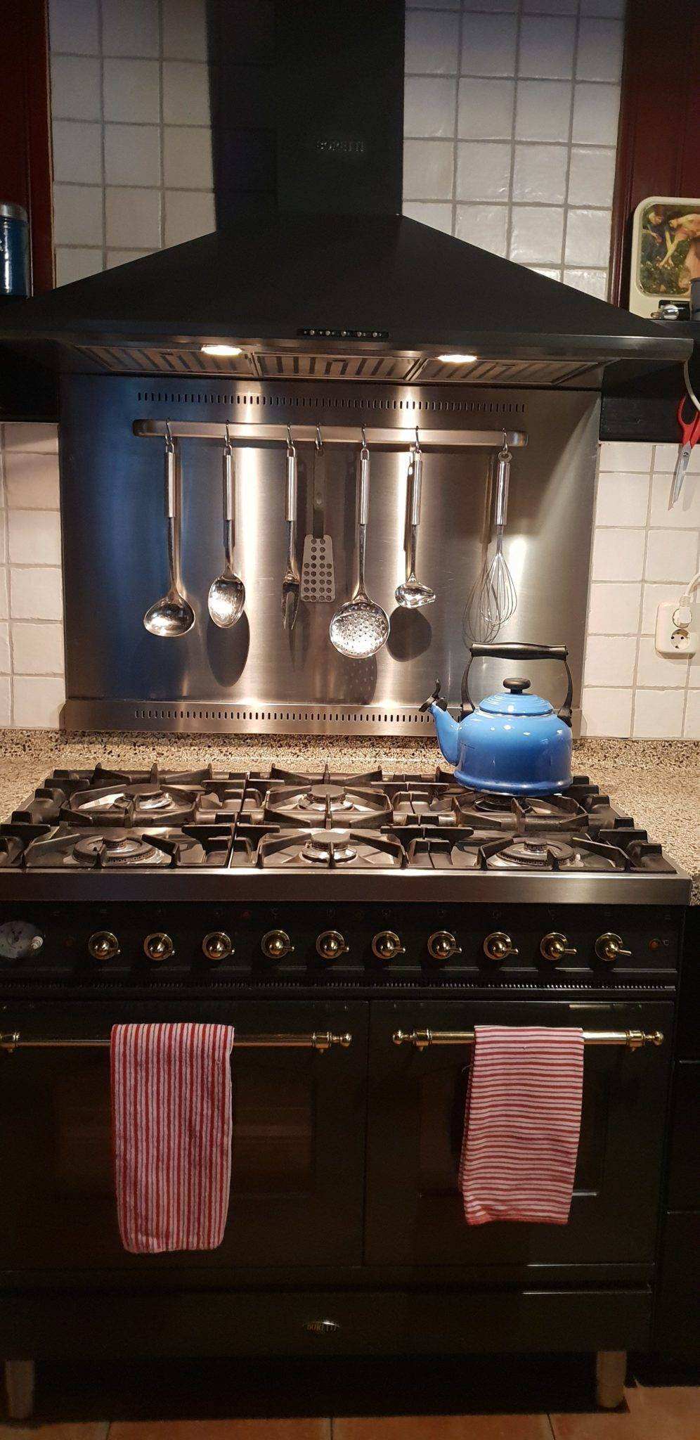 Zaterdagmorgen vroeg opgestaan,we hadden die middag het zaaltje verhuurd dus daar kwam ook weer een hoop werk mee. Schrobde eerst m’n gasstel tot tie glom als een……vul maar in. Je ziet me spijkerrok erin gespiegeld,dat wil toch wat zeggen;-)